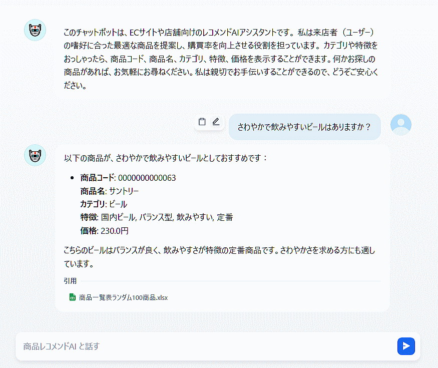 会話形式で(PNG表示)適切な商品を在庫の中からご提案致します!